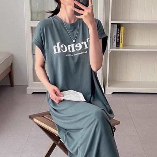 [다잇템]여자 하프 SS 반소매 편한 등원룩 롱원피스 (10430075A)