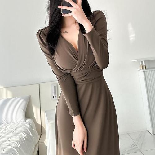 [다잇템]여자 FW V넥 미니멀리즘 롱 보온 편한 원피스 (11700618A)