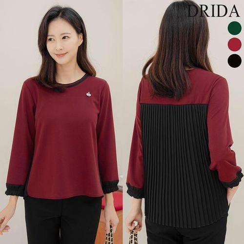 [드리다]여자 가을 겨울 플리츠 빅사이즈 티 블라우스 40-50대 미시 중년여성 엄마옷 마담 하객 모임 상..