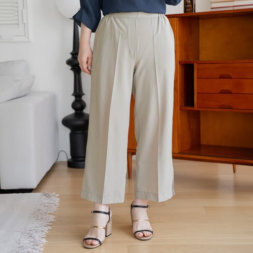엄마옷 마담4060 바지 통바지 중년여성옷 여성하의 여름옷 빅사이즈 데일리 면바지 쿨링 와이드 허리뒷밴딩 마니스티치팬츠-QPN2507036-