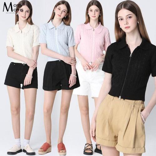 [모리모리스][모리모리스(Morry Morris)] 마들렌 집업 반팔 니트