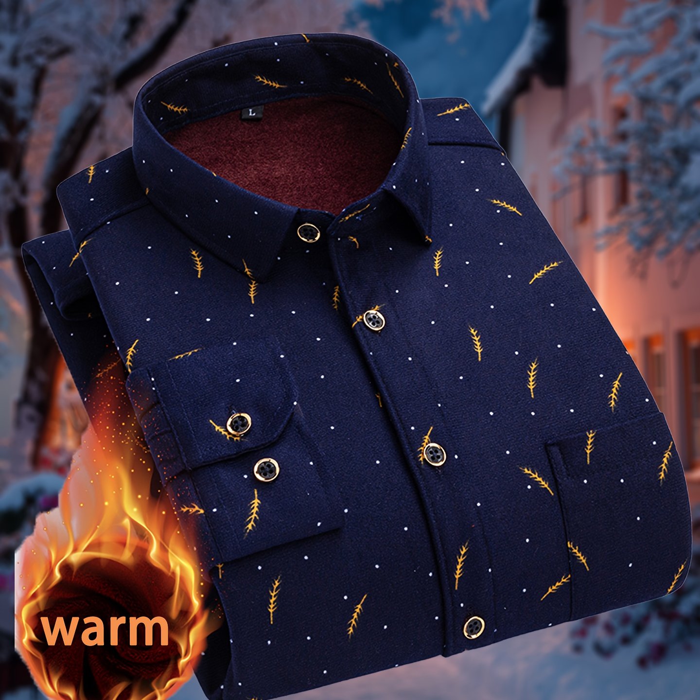 TEMU 겨울 신상 남성용 양면 플리스 셔츠, 스타일리시한 프린트 디자인, 따뜻한 두꺼운 디자인, 포켓이 있는 캐주얼 스타일