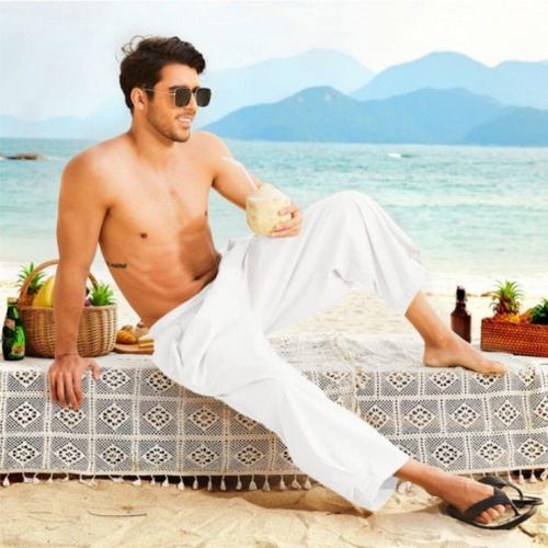 PASLTER 남성 하렘 팬츠 린넨 요가 비치 배기 여름 보호 알라딘 지니