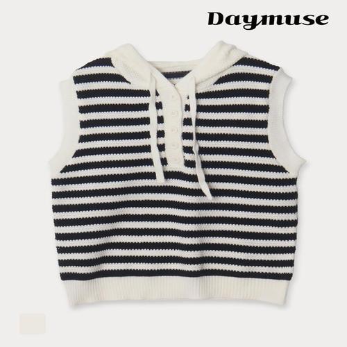 [모어오브]마쉬멜로 니트 조끼 스트라이프 후드 베스트