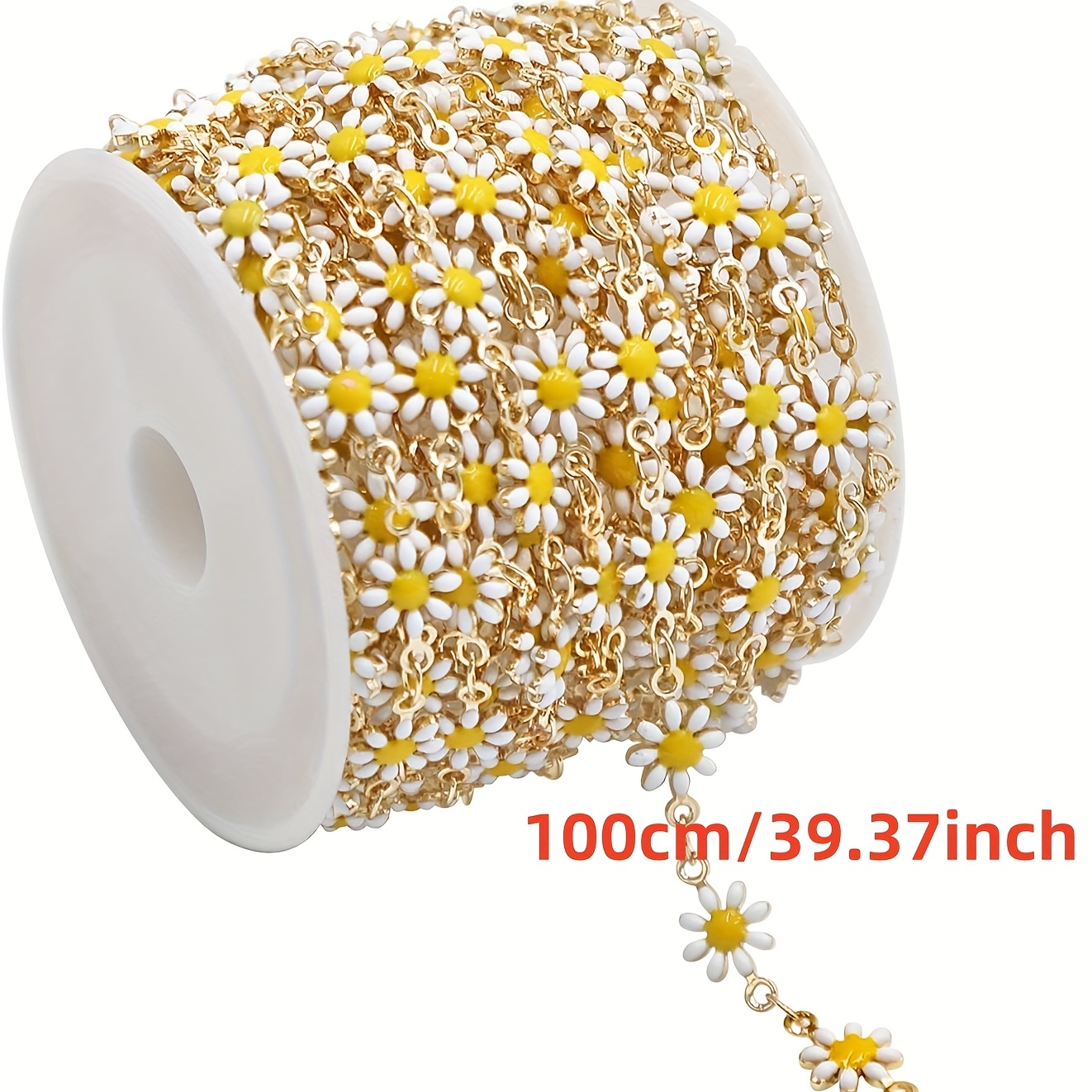 TEMU 1미터/39.37인치 커피 체인, 컬러풀 에나멜 데이지 꽃 비즈 DIY 주얼리 만들기 용품 액세서리