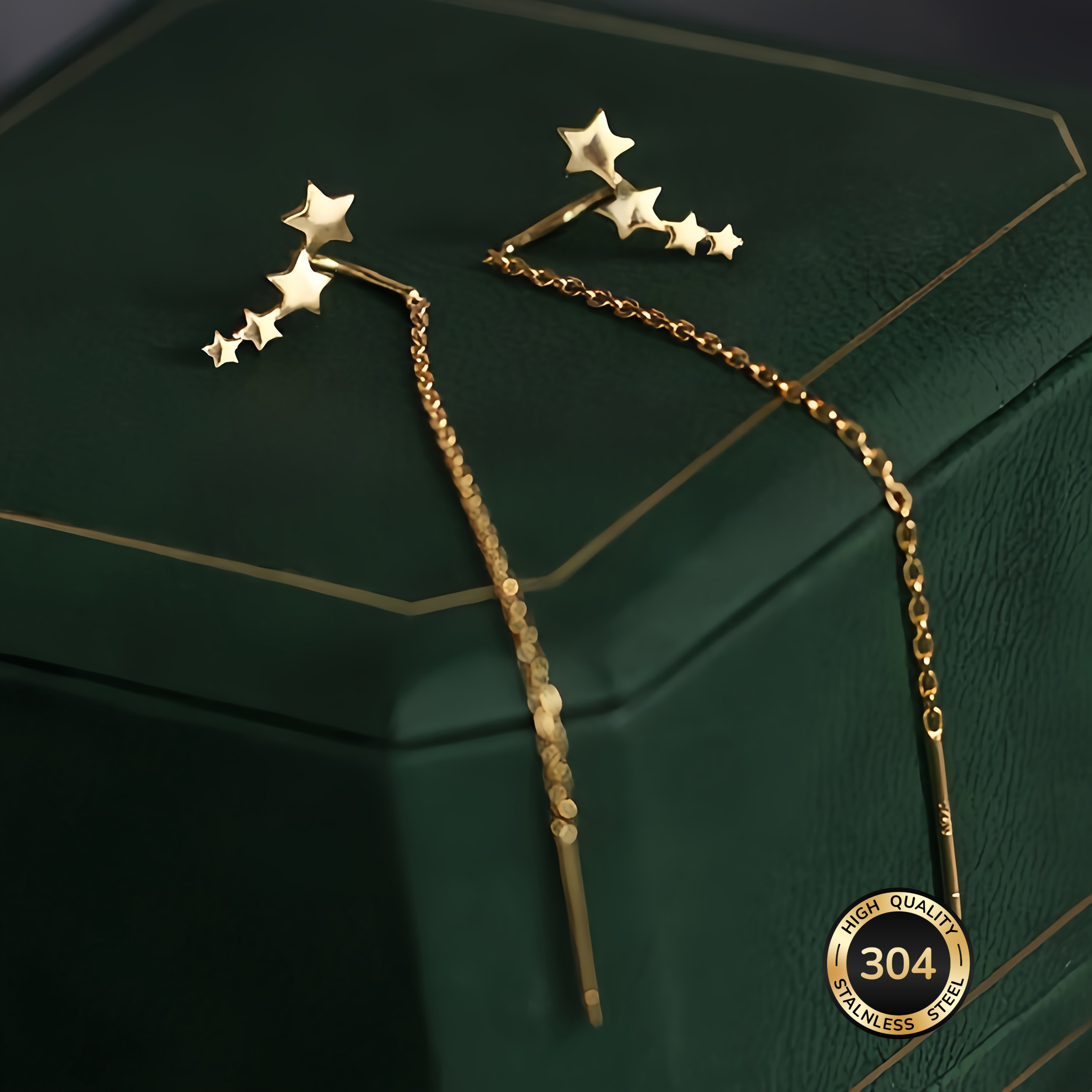 TEMU 저자극성 18K 금도금 스테인리스 스틸 별 태슬 귀걸이, 변색 방지, 편안하고 다용도, 쉬우면서도 우아함, 고품질 패셔너블 여성용 귀걸이, 또는 파티에 적합, 주얼리 추가, 고급스러운 선물
