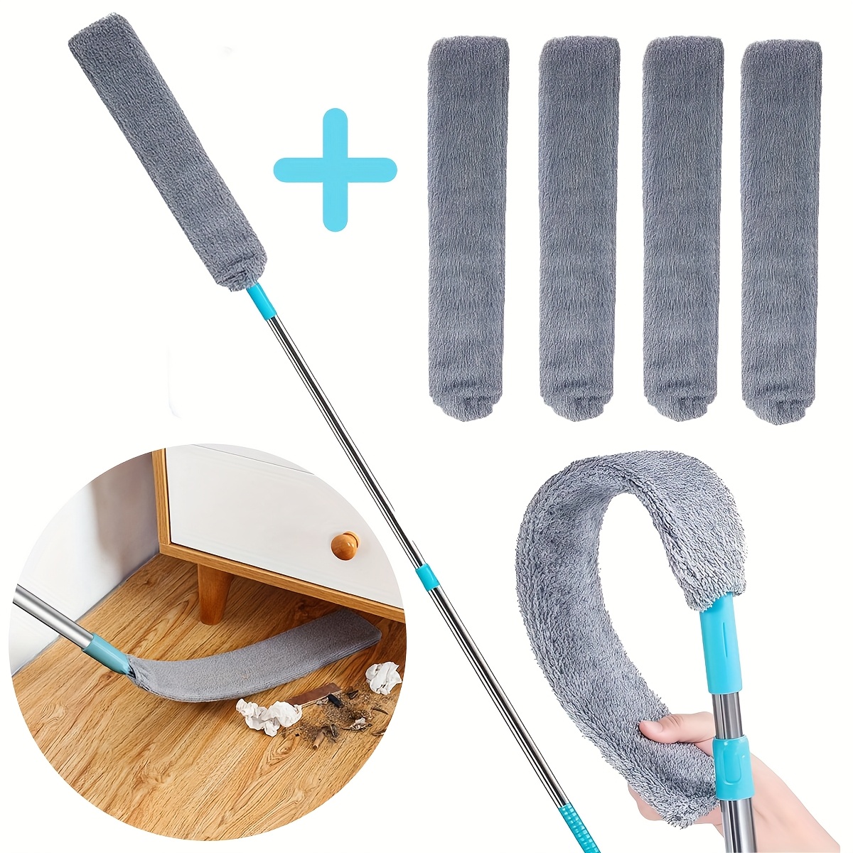 TEMU 5개입 확장형 틈새 먼지 제거 극세사 먼지떨이 먼지 브러시 (35인치 - 49인치), 교체용 천 4개 포함, 구부릴 수 있는 분리형 세탁 가능한 틈새 먼지떨이 (소파 침대 가구 바닥용)