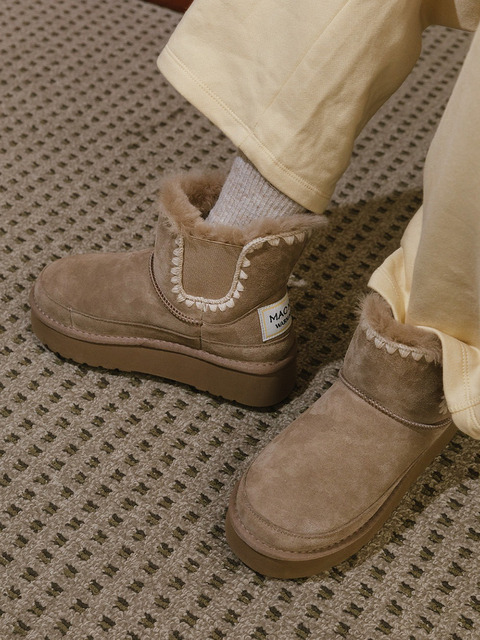 [마크모크] 아돌 소가죽 양털퍼 방한 양털부츠