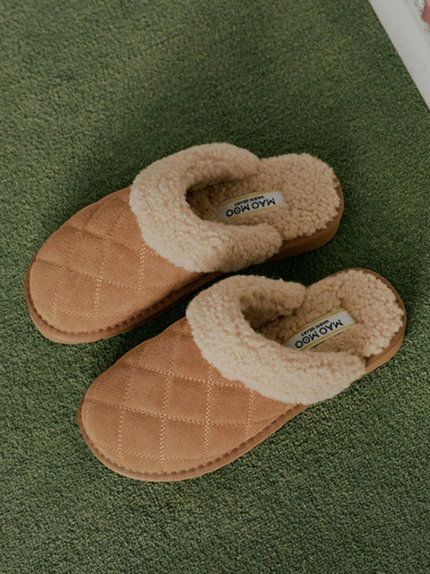[마크모크] 쏠랑 소가죽 퀼팅 뽀글이털 방한 뮬