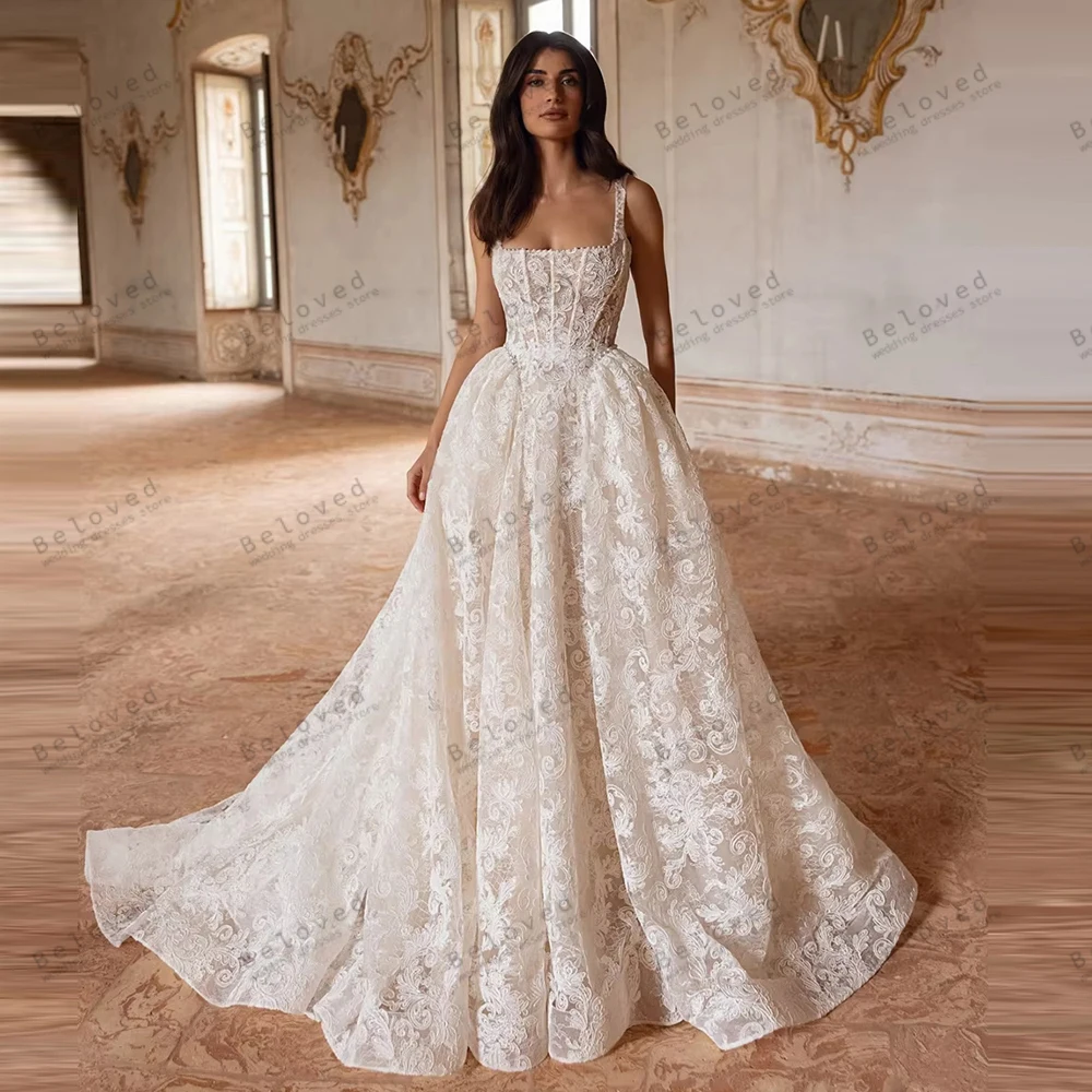 절묘한 웨딩 드레스 A 라인 화려한 신부 가운 민소매 백리스 로브 공주 예쁜 베스티도스 드 노비아 맞춤형