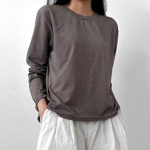 [디어로우]마테인 라운드넥 단가라 롱슬리브 티셔츠