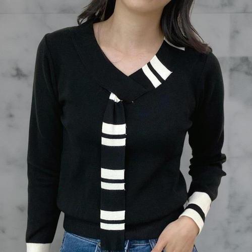 [다잇템]여성 마후라 V넥 긴팔티 스트랩 그런지 니트