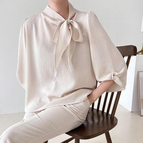 [다잇템]여자 리본 가을하객룩 마후라 칠부 블라우스