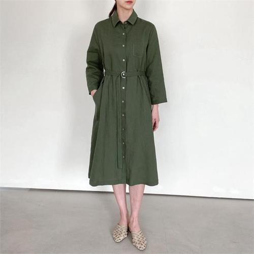 [다잇템]여자 진초록 혁대 롱슬리브 마원단 롱원피스 (9911050A)