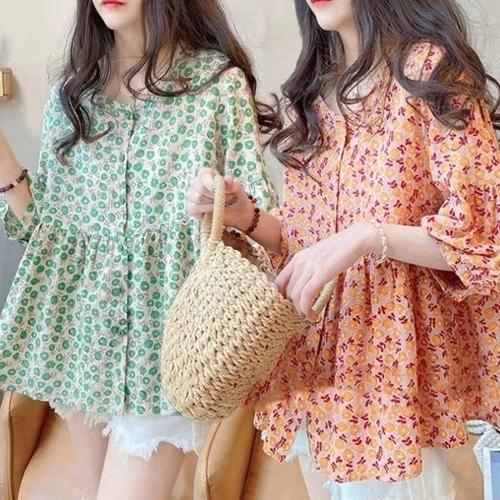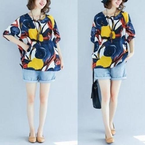 [엄지척]여성 여름 플라워 루즈핏 예쁜 면 마 블라우스_19649990_667501