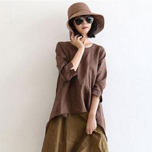 여성용 봄가을 긴팔 셔츠 블라우스 캐주얼 코디 면 마 라운드 남방 루즈핏 슬림핏 상의 LJX
