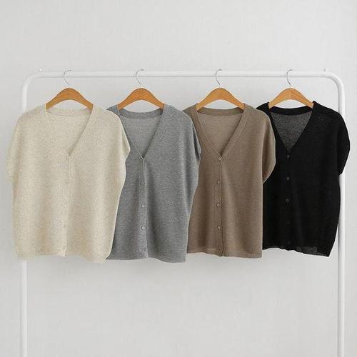 [다잇템_패션]여성 스웨터 카디건 V넥 마원단 반소매 가디건