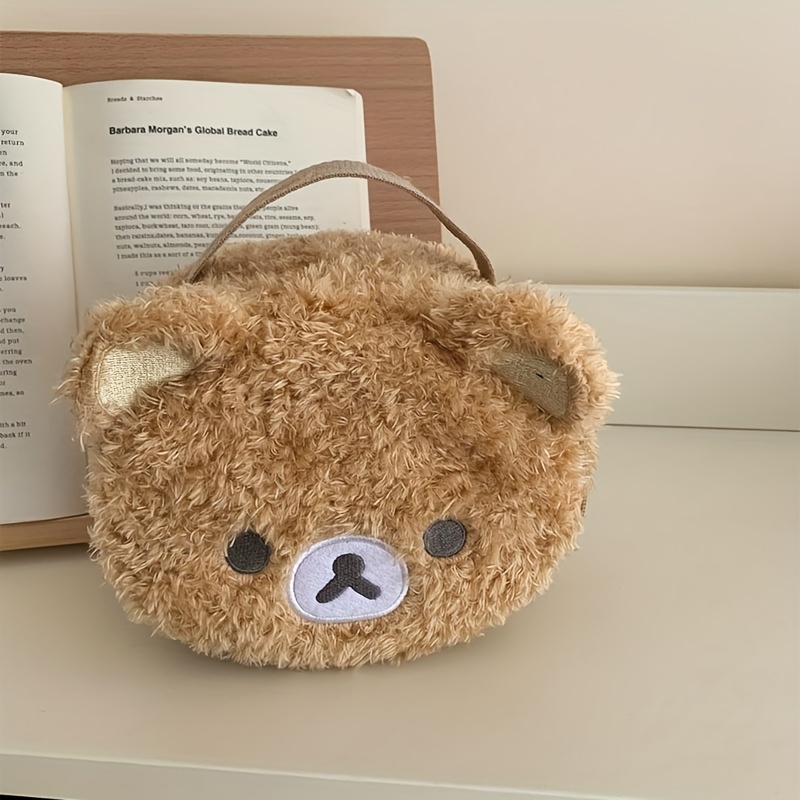 TEMU 여성용 귀여운 플러시 곰 모양 화장품 & 여행 정리 가방 - 푹신한 귀와 표현력 있는 눈, 부드러운 털 질감, 컴팩트한 휴대용 메이크업 케이스, 탈착식 스트랩, 사랑스러운 3D 디자인 (흰색 바탕에 갈색 귀와 얼굴) - 여행, 학교, 일상 사용에 이상적인 귀여운 선물 (갈색 귀와 얼굴)|화장품정리함