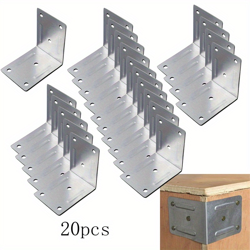 TEMU 20개 헤비듀티 스테인리스 스틸 L형 코너 브래킷 - 사전 구멍 뚫린 조절 가능한 각도 금속 조인트 플레이트, 나무 선반, 캐비닛, 가구, 테이블, 문용 / 실외 사용 (나사 미포함)