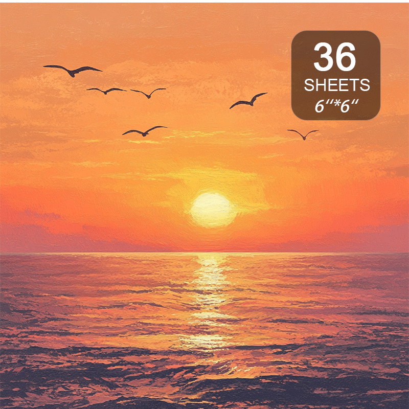 TEMU 선셋 해변 및 해안선 삽화 스크랩북 용지, 6x6 인치, 36 장 - 저널, 수작업 카드 및 사진 앨범용 따뜻하고 평온한 디자인, 해변 테마 장식