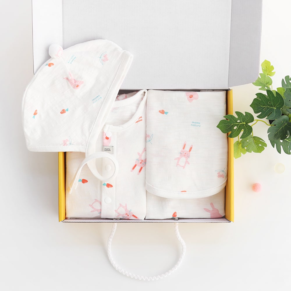 신생아 토끼띠 출산 선물 3종세트 배냇+속싸개+보닛