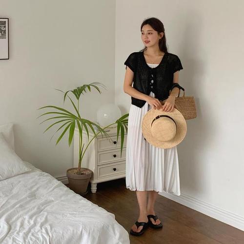 [다잇템]여자 스웨터 SS 탑 망사 슬리브리스 탱크 세트 (10003374A)