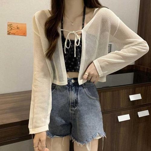 [엄지척]메쉬 망사소재 가슴 앞 끈 포인트 숏기장 가디건_19799131_667501