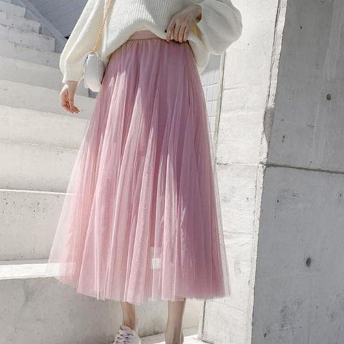 망사스커트 여자 쉬폰 샤스커트 밴딩 롱스커트 레이스 발레리나 WFJHMVS