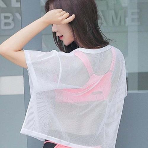 [오너클랜]인기상품 여성용 시스루 메쉬 크롭 티셔츠 여름 레이어드 용망사 반팔 티 [WFLIMYZ_260301]