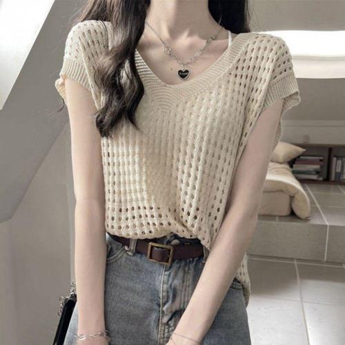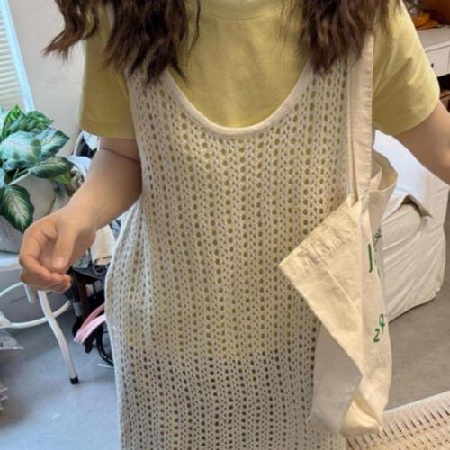 그물 레이어드 나시 민소매 망사 니트 여성 여름 나시티 OFS-KNV9