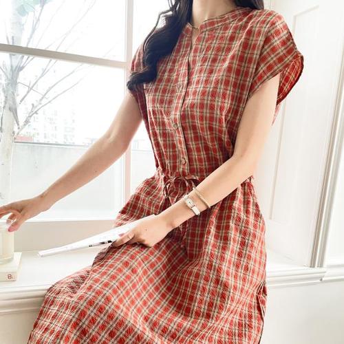 BZ12OP01DN 트위드 블라우스 배색 원피스
