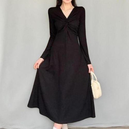 [신상오픈런]여성 클래식 블랙 V넥 트위스트 롱 드레스