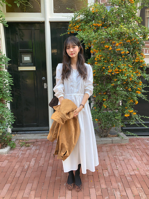 [보리보리/보리맘]버튼 후드 퍼프 소매 빅사이즈 롱 원피스