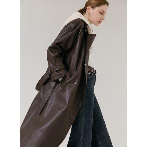 [막스까르띠지오]더블버튼 맥시 레더 트렌치 코트