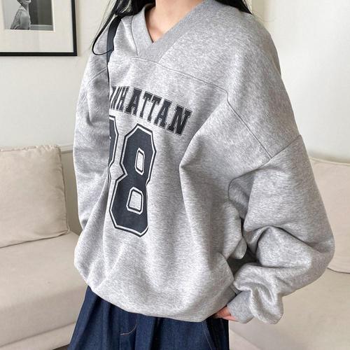 에르디테 / 에르디테 맨하탄 프린팅 브이넥 루즈 오버 핏 맨투맨 긴팔 티 4컬러