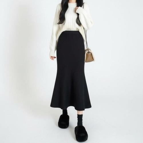 (스타일하우스)스커트 치마 3컬러 머메이드룩 허리밴딩 니트 롱치마