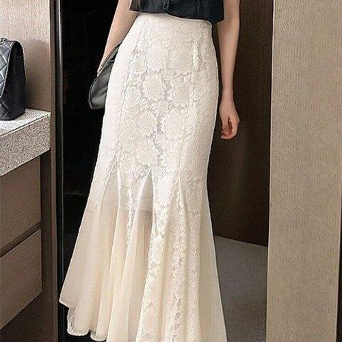 [미라클세븐]여성용 꽃무늬 레이스 머메이드 슬림 롱드레스