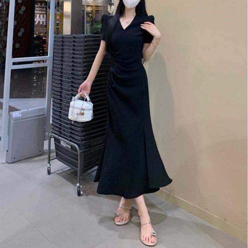 [오너클랜]인기상품 여성 머메이드 블랙 반팔원피스 퍼프 여름 하객룩 [WFLL7ZI_260304]