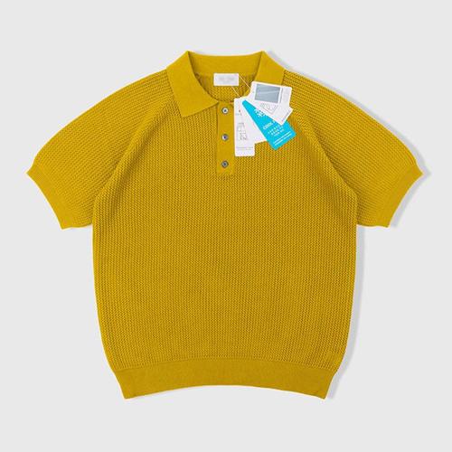 남자 버튼 카라넥 솔리드 반팔 니트티 AT-KNH-Q001-머스타드