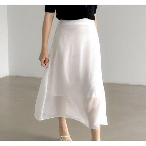 [머스트비]여성 썸머 시스루 밴딩 롱 스커트