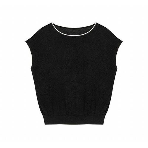 [머스트비]여성 배색 라인 디테일 캡소매 니트