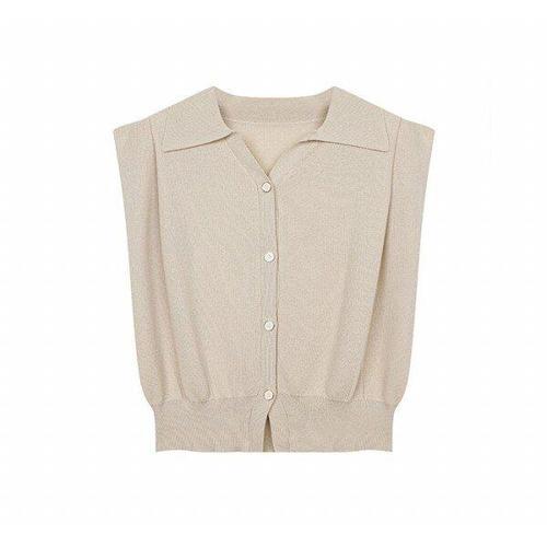 [머스트비]여성 시스루 언발 어깨끈 반팔 니트