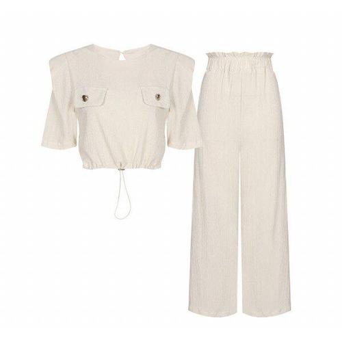 [머스트비]여성 스트링 크롭 블라우스 밴딩 팬츠 세트