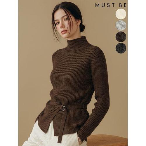 [머스트비]여성 벨트 스트랩 반폴라 니트