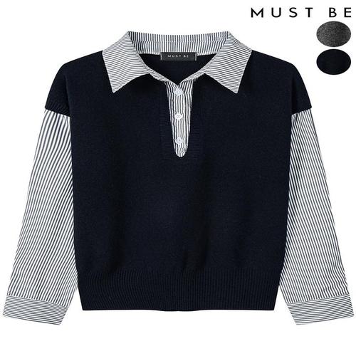 [머스트비]여성 스트라이프 셔츠 일체형 캡소매 니트