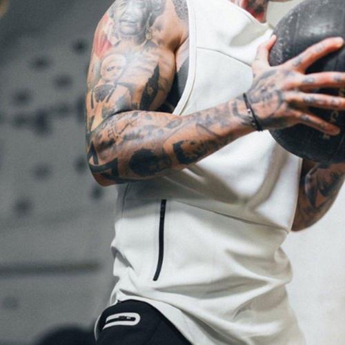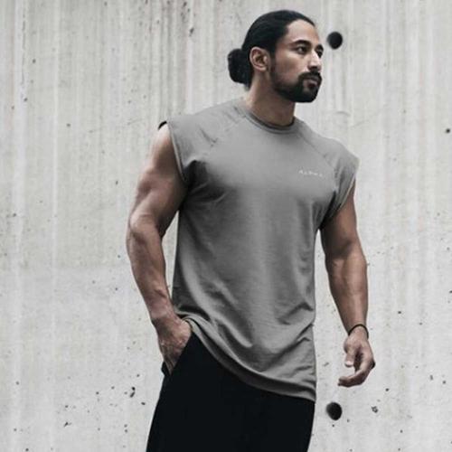 남성 머슬핏 헬스 나시 티셔츠 운동용 코튼 면 슬리브리스 짐웨어