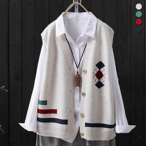 [유니제이] 카니아 멀티 패턴 브이넥 조끼