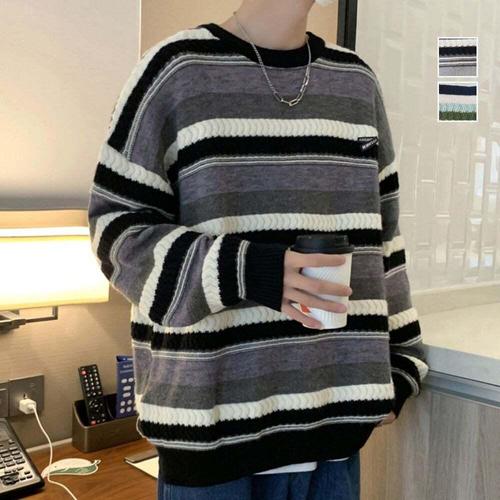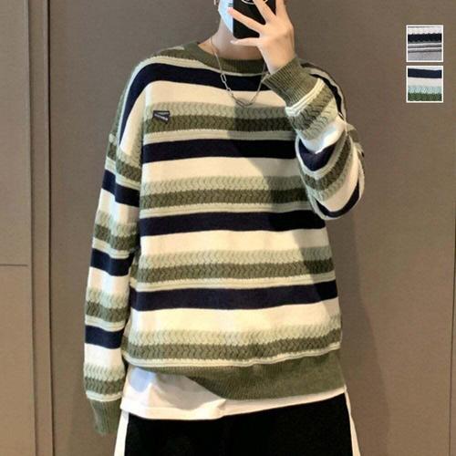 [엄지척]남성 멋진 배색 라인 라운드넥 오버핏 긴팔 티셔츠_20430853_667501