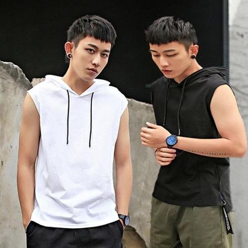[엄지척]남성 여름 얇고 시원한 소재 멋진 후드 민소매 티셔츠_20459462_667501