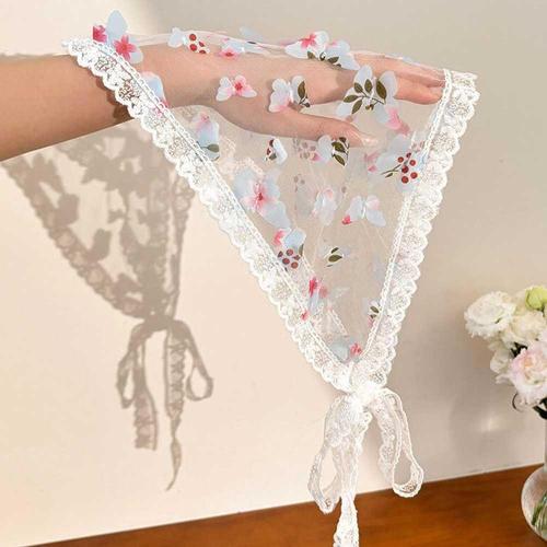 [애슬릿] 여성 꽃 레이스 얇은 여름 쁘띠 타이 스카프